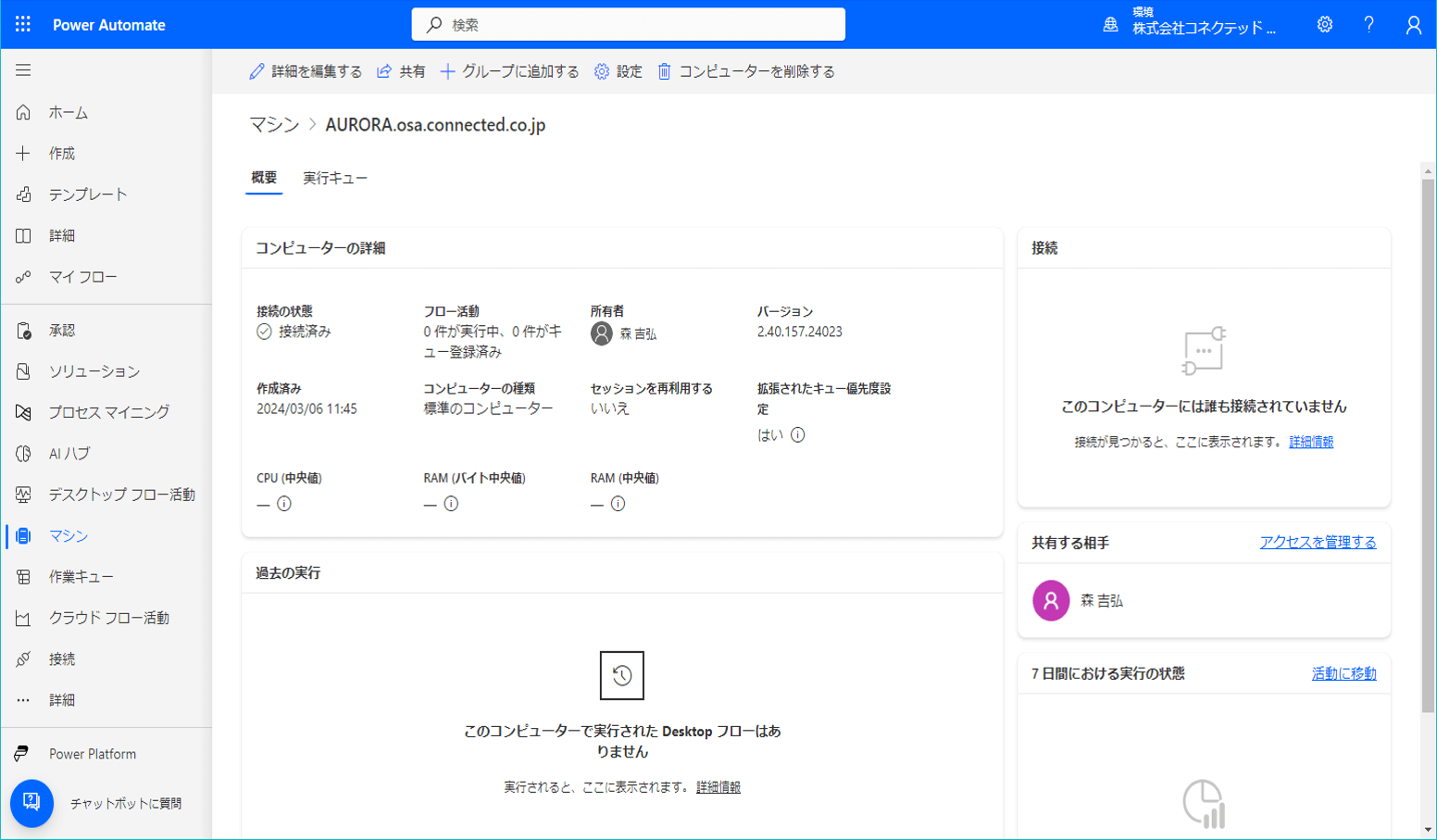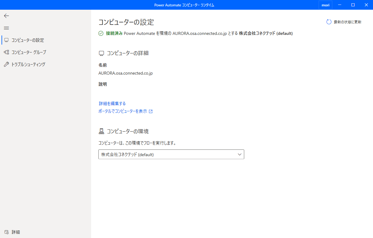 - Power Automate machine runtimeを起動します。
